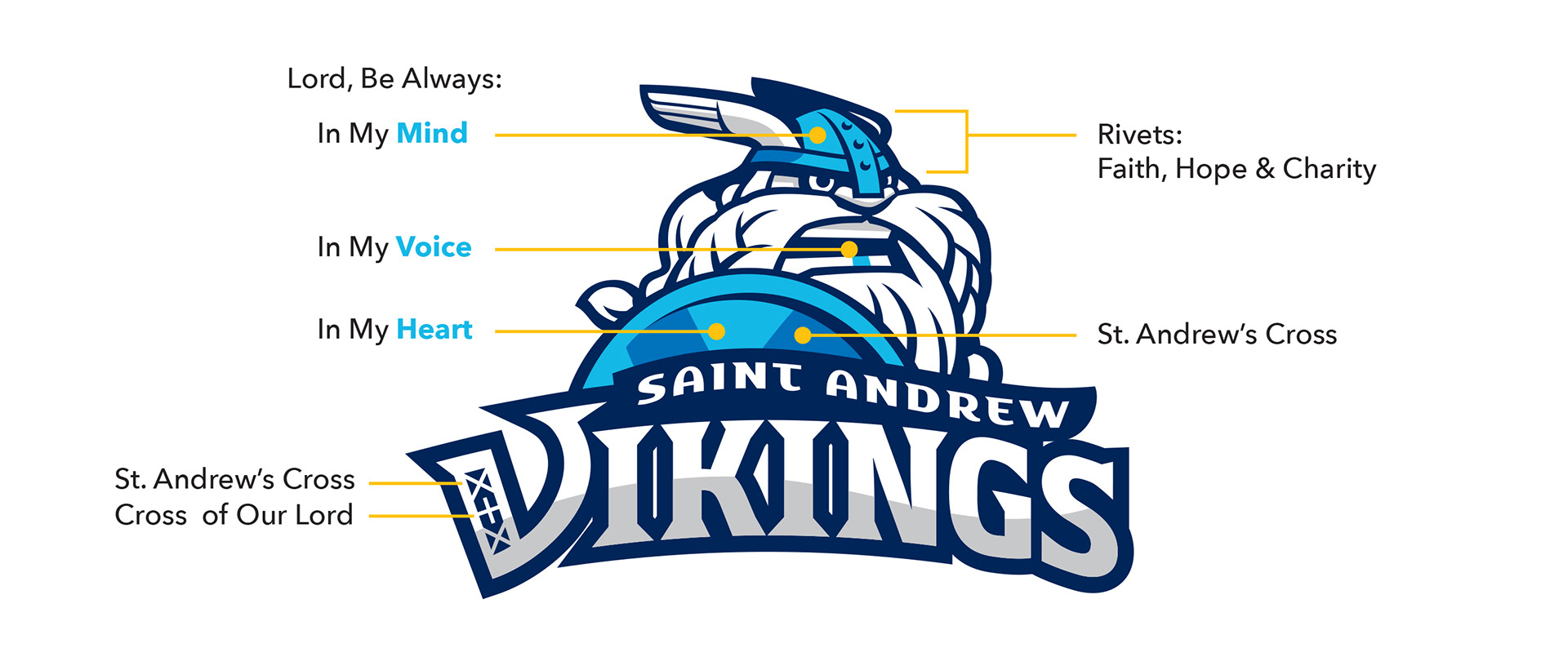 Saint Andrew's school colors have always been blue and gold. I felt that we could expand the palette to give all our branding more flexibility while still respecting that traditional 2-color scheme.